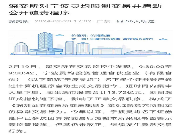 42秒賣出深市股票13.72億元 量化私募寧波靈均被限制交易