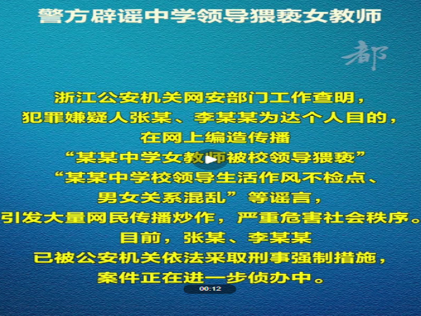 造謠“中學女教師被校領導猥褻”,嫌疑人被采取刑事強制措施!公安部公布→