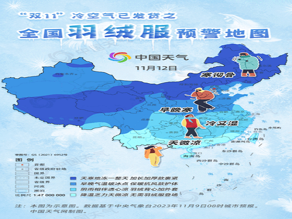 雙十一冷空氣已發貨!全國羽絨服預警地圖出爐 三分之二國土需羽絨服護體