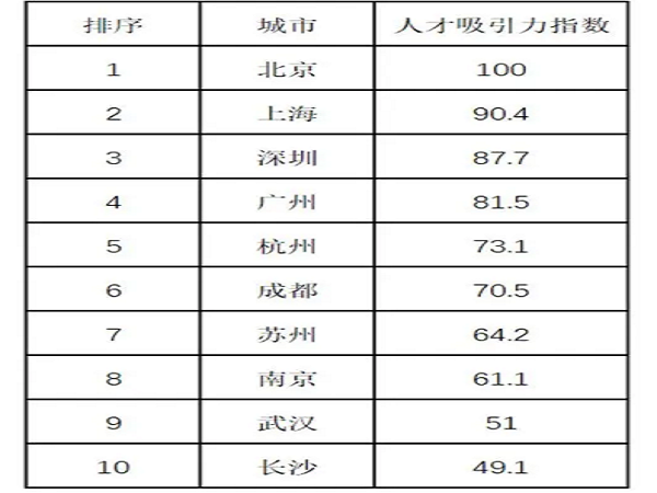 中國人才吸引力10強城市出爐:北京拔頭籌,東部城市居多