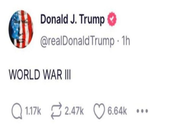 中新網4月10日電 據外媒報道,美國前總統特朗普9日在社交媒體平臺上寫道:“第三次世界大戰。”這是他自2022年底宣布競選美國總統以來,至少第5次發表此類言論。