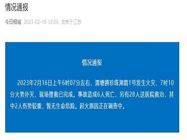 2023年2月16日上午6時07分左右,渭塘鎮珍珠湖路1號發生火災,7時10分火勢撲滅,現場搜救已完成。事故造成6人死亡,另有28人送醫院救治,其中2人傷勢較重,暫無生命危險。起火原因正在調查中。