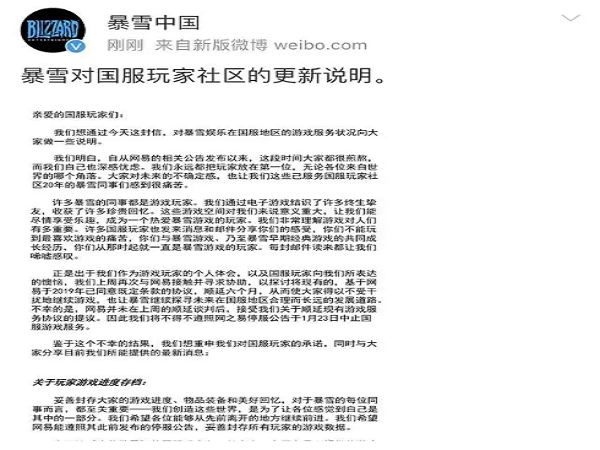 網易和暴雪的“分手”事件發酵兩個月后,暴雪和網易確定談判失敗,不再續約合作。