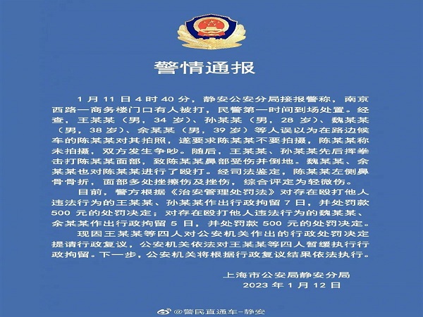 1月12日,上海市公安局靜安分局發布的一則警情通報引人關注。據媒體報道,通報中毆打他人的男子,系北京普思投資董事長、IG電子競技俱樂部創始人王思聰。