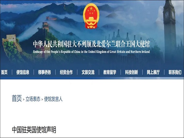 中國駐英使館聲明:英國政府包庇“非法沖闖總領館館舍”反華分子