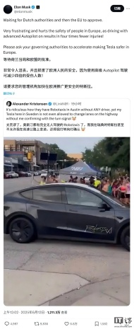 馬斯克喊話歐盟:請盡快批準特斯拉FSD技術落地