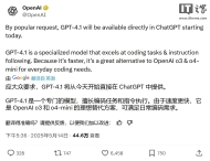 OpenAI升級ChatGPT AI聊天機器人,GPT-4.1編程專家模型登場