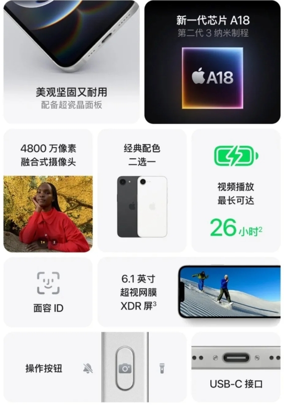 蘋果發布iPhone 16e:搭載A18芯片,起售價4499元