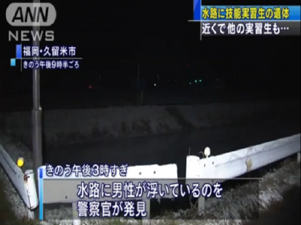 日本警方在1月份,先后發現了兩名中國籍實習生死在福岡縣久留米市的一條水道中。兩人生前認識對方。目前當地警方正在調查這兩起案件是否為犯罪案件。