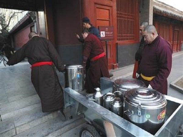 今年臘八節雍和宮舍粥98鍋,8500余市民喝上臘八粥;市民稱來雍和宮過臘八節已成傳統