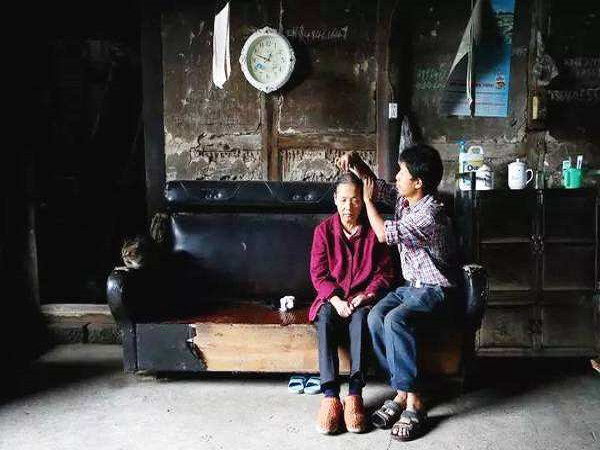 37歲的王顯強,家在重慶市綦江區永新鎮伏牛村。23年前,王顯強的母親田井貴意外摔倒導致全身癱瘓,吃喝拉撒全由王顯強的父親照顧。