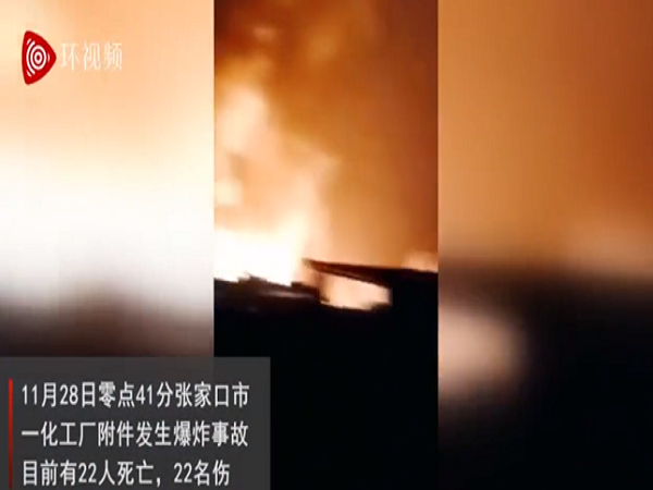 11月28日零時41分,在張家口市橋東區河北盛華化工有限公司附近發生的爆炸起火事故,經公安消防現場搜救確認,目前有22人死亡,22名傷者已分別送往河北北方學院第一醫院和251等醫院救治。