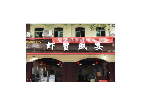 5月30日,家住青白江的朱女士經過政府北路時,被兩家店鋪門口懸掛的橫幅廣告語吸引住了,一家名叫蝦蟹盛宴的店前掛橫幅稱“隔壁蝦季好難吃”,還附上尖頭直指右邊店鋪,而右邊店這叫名家蝦季的店也毫不留情懟回去:“隔壁蝦蟹盛宴更難吃”。