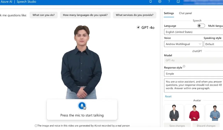 微軟Azure AI語音服務推出虛擬人形象 支持文本轉視頻
