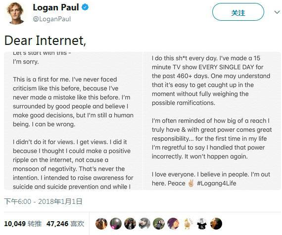 今年22歲的保羅是美國社交媒體上的大明星,他經常發布惡作劇視頻,在優兔和推特上分別擁有1500萬和390萬粉絲。雖然他已經將這段視頻從自己的優兔主頁上撤了下來,但其他用戶又將其重新上傳到網上。保羅還在個人推特賬戶上發表道歉聲明,表示自己從來沒有像現在這樣被這么多人批評,他堅稱發布這段視頻并不是為了獲得點擊量,而是要提高人們預防自殺的意識。他還說,自己發布了太多視頻,很容易不考慮可能的后果。不過這些道歉并沒有得到網友的諒解。優兔的母公司——谷歌尚未就保羅此舉是否違反優兔網站服務規定作出回應。