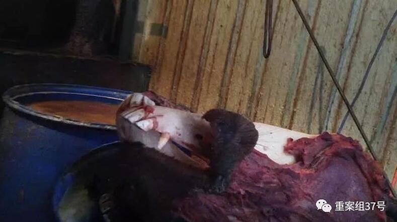 記者歷時半個月,揭開了“假驢肉”黑幕。在河北滄州河間,多個家庭作坊甚至正規企業都會利用騾子肉、馬肉、豬肉冒充驢肉。除了河北省內各地,這些“假驢肉”每天也被成批量發往北京、山東、安徽、河南等地的各個驢肉火燒店。被冠以“中國驢肉火燒之鄉”的河北河間,多個鄉鎮存在熟食加工黑作坊,他們所加工正是當地名吃――“河間驢肉”。這些“驢肉”多不含驢肉,而是由騾子肉、馬肉甚至豬肉,加上驢肉香精以及其他添加劑煮成,價格低廉,一斤在20元左右。經調查發現,這些黑作坊通過貨車、汽車大巴等方式,將一包包“假驢肉”發往全國各地。其中一名黑作坊老板稱,該貨車每天跑一趟北京,整車裝滿可拉七八噸的貨,但真驢肉只占三成。圖為河間市黎民居鄉竇莊村一假驢肉加工黑作坊內,藍色大桶內裝著煮制假驢肉的高湯,另一桶內是馬頭,用來作“驢頭肉”。