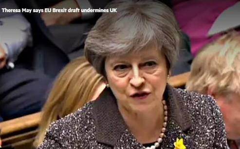 28日草案公布后,英國首相特雷莎梅立即回應,任何英國首相都不會接受這一草案。