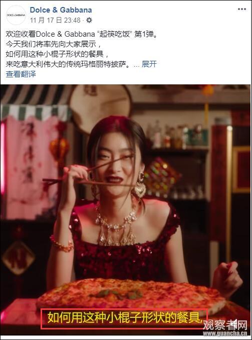 據觀察者網此前報道,近日D&G的一則廣告片因“中式發音”、模特用奇怪的姿勢使用筷子吃Pizza等片段被指歧視華人,一位網友在ins說起這件事,D&G設計師Stefano Gabbana的賬號前來爭辯,惱羞成怒大罵出口,還公然辱華。