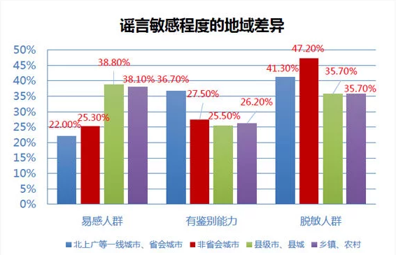 謠言敏感程度的地域差異圖表。(圖片來源:《2017年度食品藥品辟謠分析報告》)