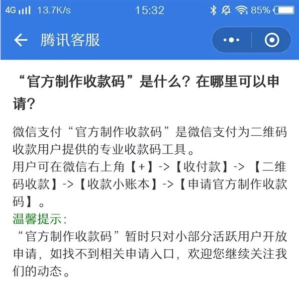 不過有個問題,官方收款碼并沒對所有用戶開放。