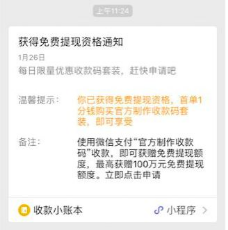 截止2018年12月31日,商戶使用“官方收款碼”進行收款,可以累加免費提現額度。