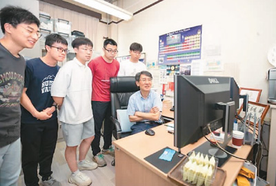 薛其坤(右一)指導學生開展學術研究。本文配圖均由清華大學提供