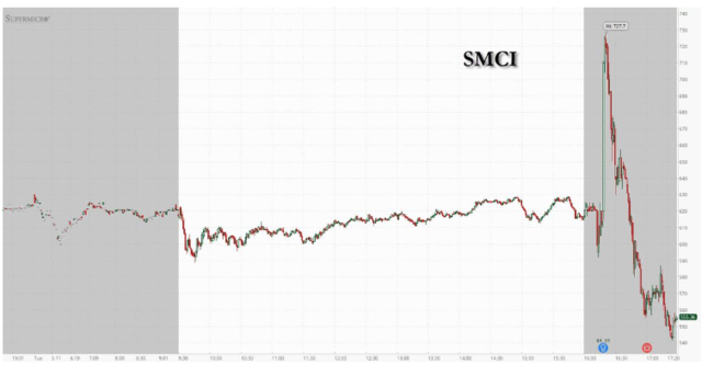 營收雖然超預期,但EPS不及預期以及毛利率下滑,讓超威電腦股價盤后先是大漲,然后跳水下跌超10%。