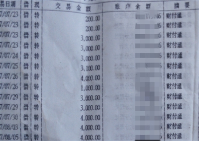 以銀行卡被盜刷為由報警后,朱英根據民警的提示,到銀行打印了近期的交易明細清單。清單顯示,5月21日至8月5日,銀行卡內4.9萬余元通過“財付通”轉出,共58筆,少則11.4元,多則4000元。但由于平時并未接觸過財付通,她連財付通是什么都不知道。