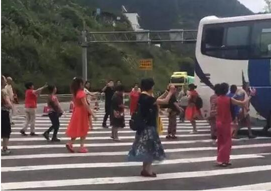 9月5號在雅西高速上,因為大巴故障一群大媽在高速路上跳起了廣場舞。