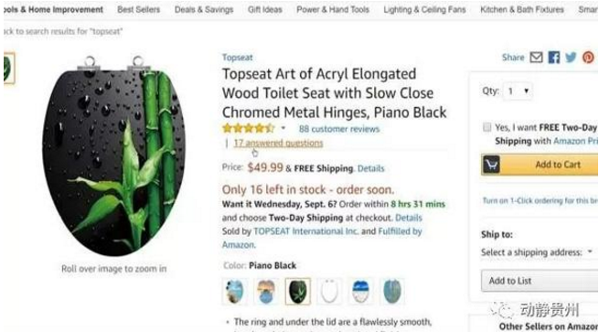 這是在全球電商巨頭亞馬遜網站上,貴州造馬桶蓋的銷售界面。