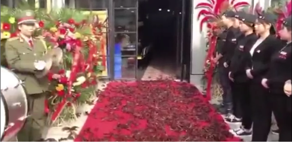 據了解,這些龍蝦是特地從江蘇盱眙拉過來做“開業嘉賓”的。從視頻中可以看到,400斤小龍蝦在音樂伴奏和店員列隊歡迎下走紅毯,場面相當壯觀。小龍蝦店門口的一席長長的紅毯上不是什么大明星,也不是什么店家的股東等等人物,而是整整400斤龍蝦走紅毯的場面,紅毯上密密麻麻遍布了龍蝦的身影,旁邊除了幾位店員和門店負責之外,還有幾名穿著軍綠色軍服的敲鑼打鼓伴奏人員,其余全都是圍觀的群眾,而這些龍蝦是特地從江蘇眙盱拉過來的。