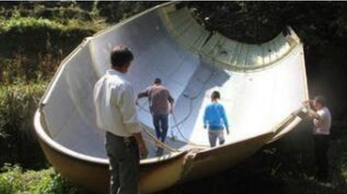 ● 2013年7月,一塊銀白色的船形物體,伴隨著巨響墜落在恩施咸豐縣清坪鎮排豐壩村三組大堡上。后經證實是太原衛星發射中心發射的長征4號丙運載火箭整流罩。