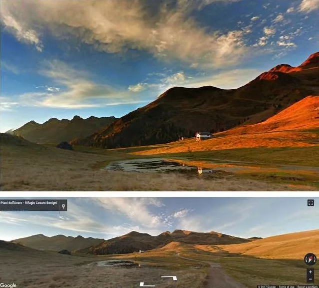 下面是該 AI 系統基于 Google 街景創作出來的一些作品:
